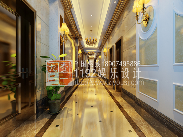 在走廊里运用欧式线条,玫瑰金不锈钢顶线,欧式壁灯,整体搭配上梦幻颜色的灯光效应,让在