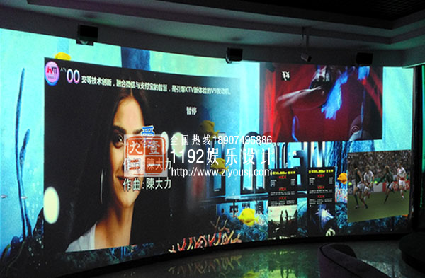 1只中置扬声器在安装在视频显示设备的上方。有些包房里还专门设置有独唱区域,通过舞台、灯光