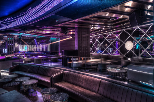 夜店装修设计的主要特点是灯光的变幻和玻璃晶体的大量运用,闪闪发光的马赛克饰面墙壁、立体构